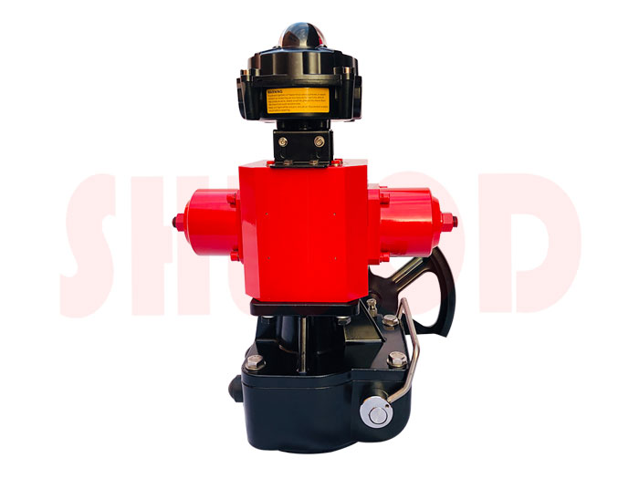 本執行器附帶手動裝置,使用時,向上拉起手柄,轉動手輪,即可實現開閥和關閥。